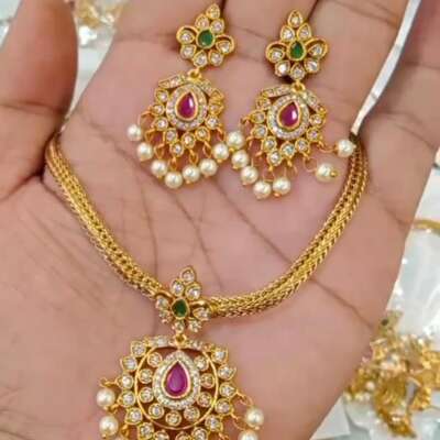 Beautiful combo with 4 necklace and 3 earrings and 1 mangtikka