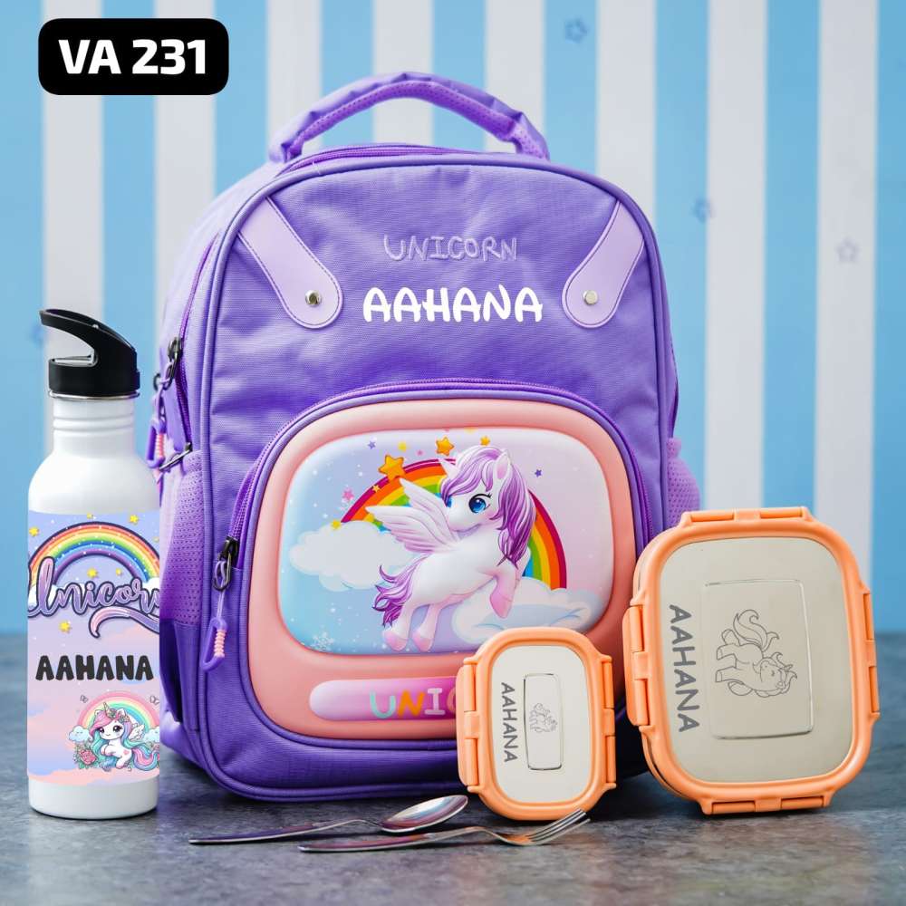 – Stainless steel spoonBag+Bottle+lunch box can be customised