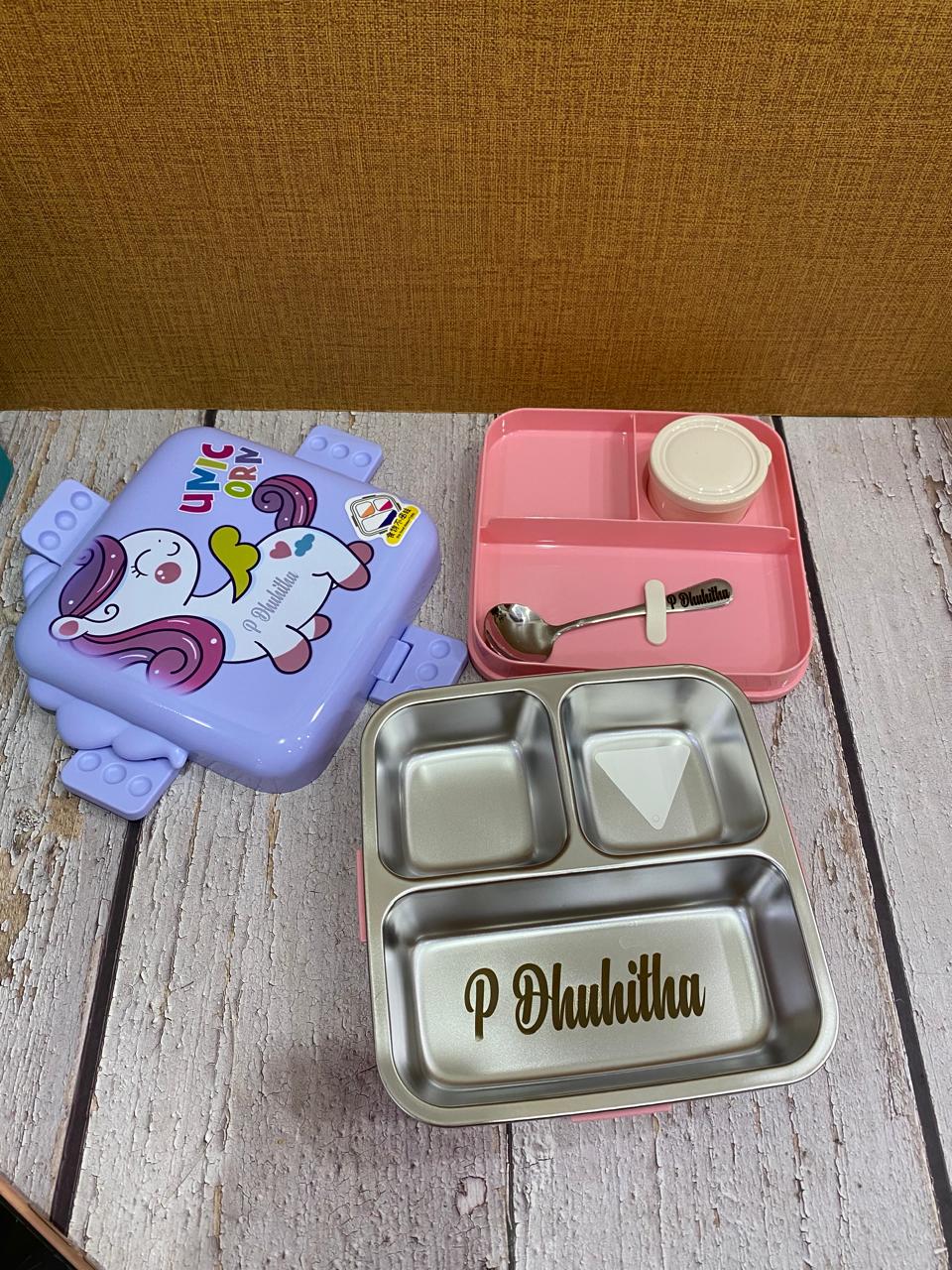 Insulated cartoon printed Steel Lunch Box(with name outside)