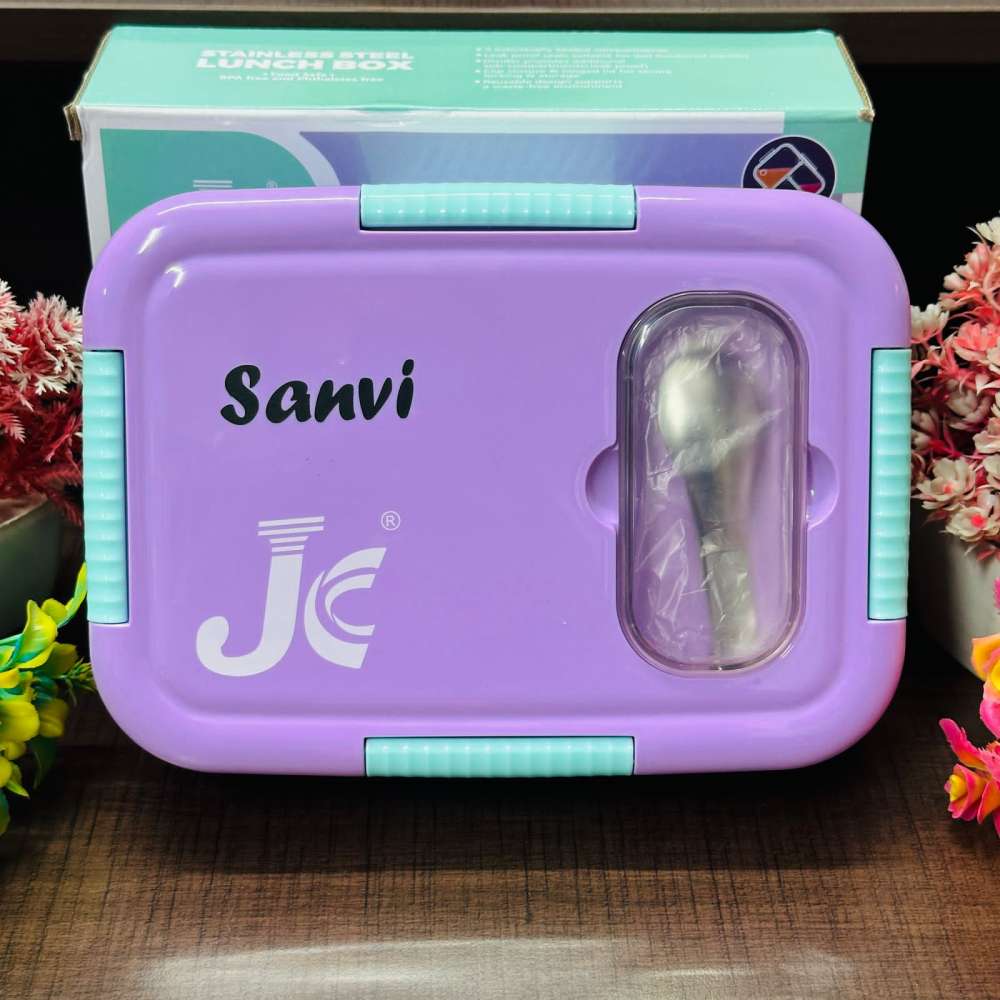 unch Box Set With Spoon + Fork + Bottle + Napkin + Round Dibbi