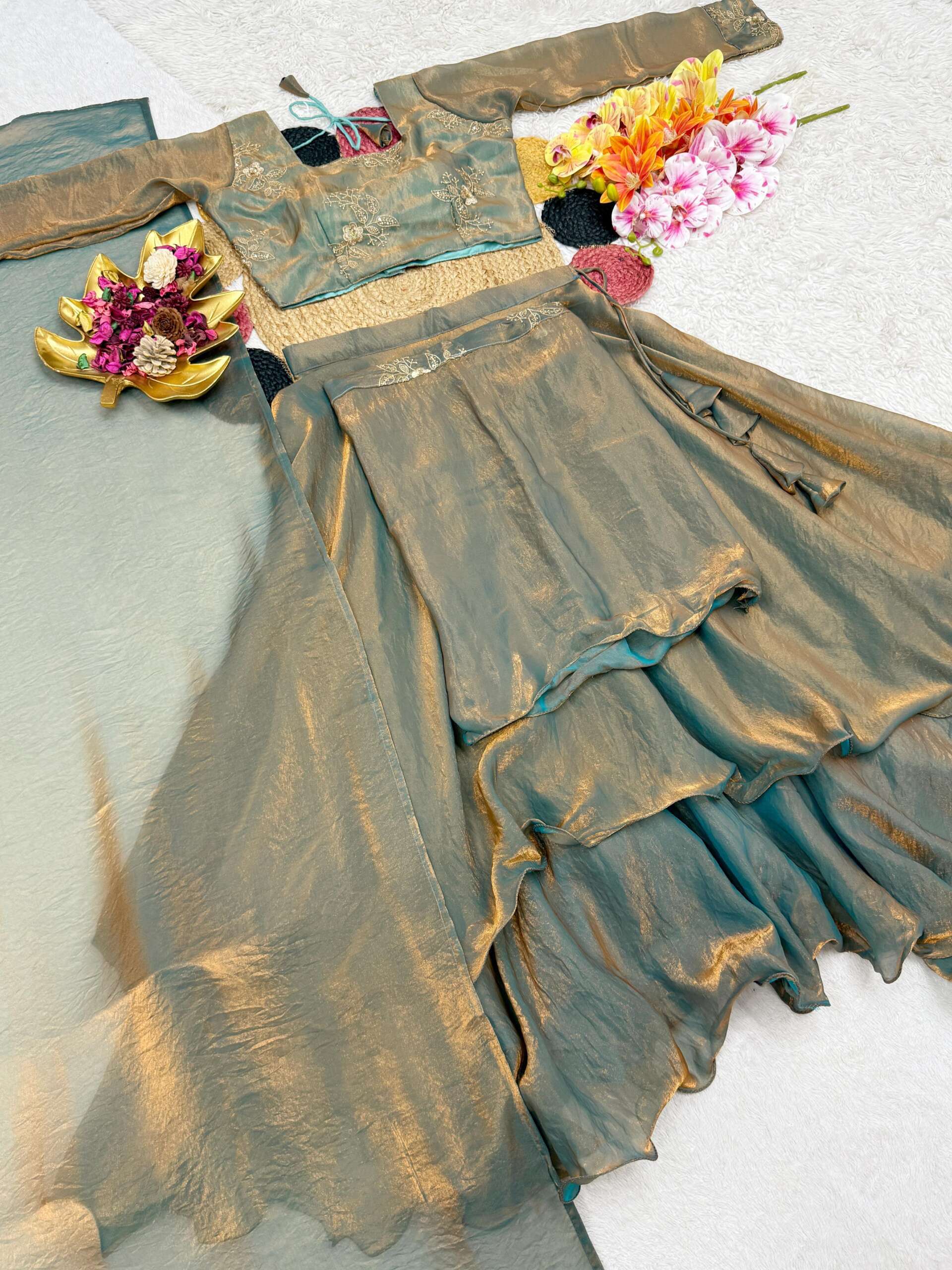 ✨ Launching Our Latest Christmas Collection Beautiful Heavy Space Silk 3 In 1 Style Lehenga choli Set Double Frill – Where Elegance Meets Comfort! ✨