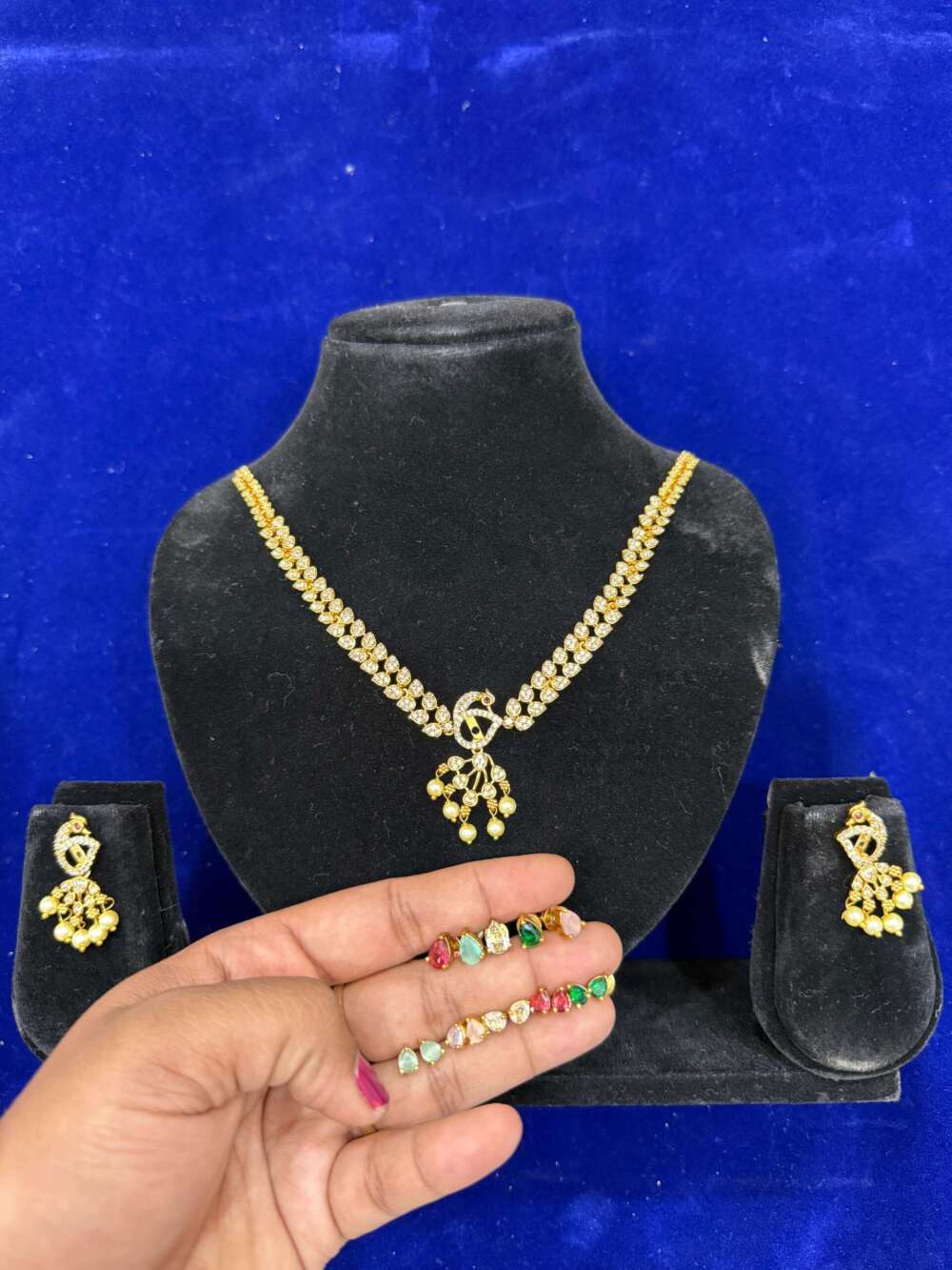4 in 1AD Changeable cz necklace with earrings