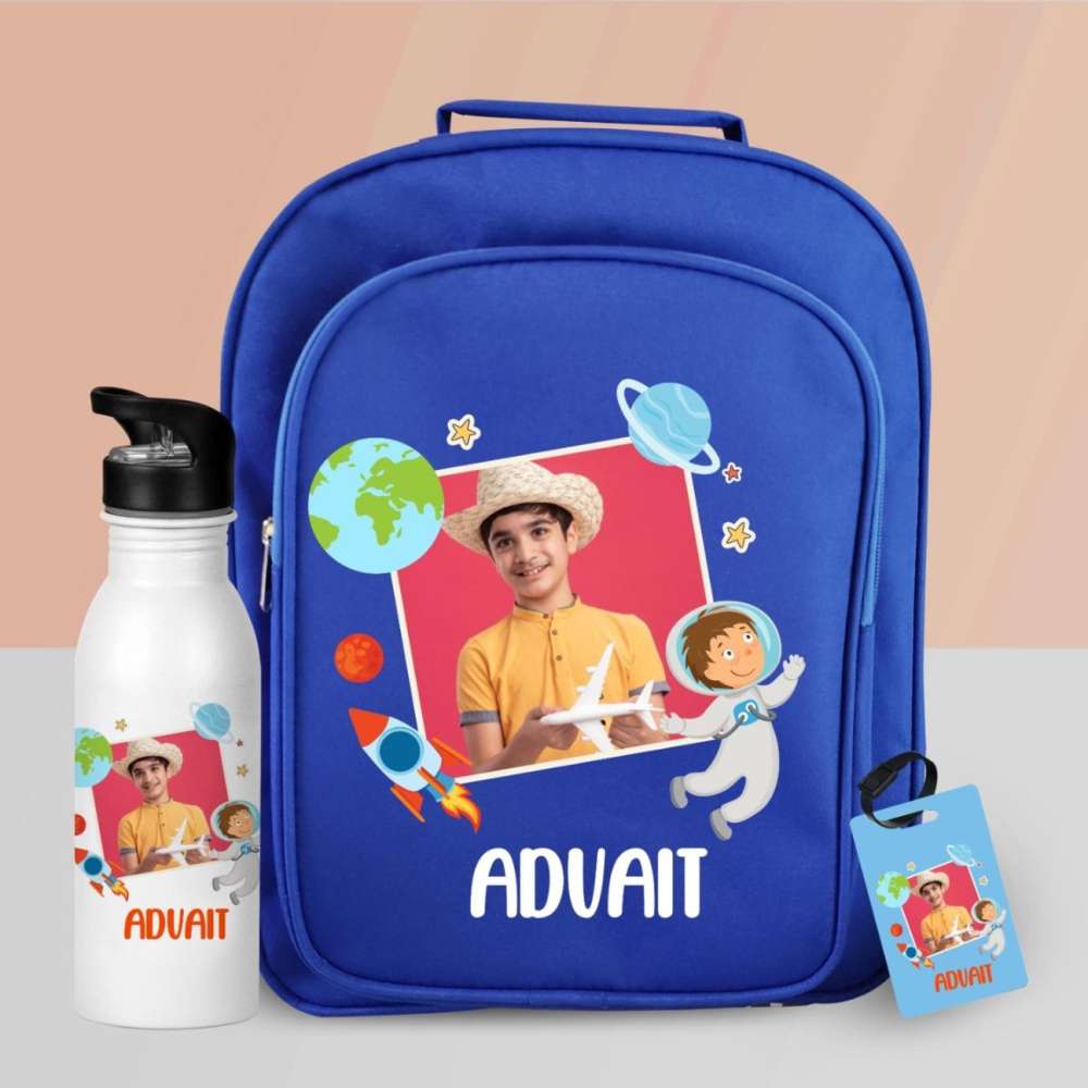 Personalized School Bag+ Steel Sipper+ Free Bag Tag