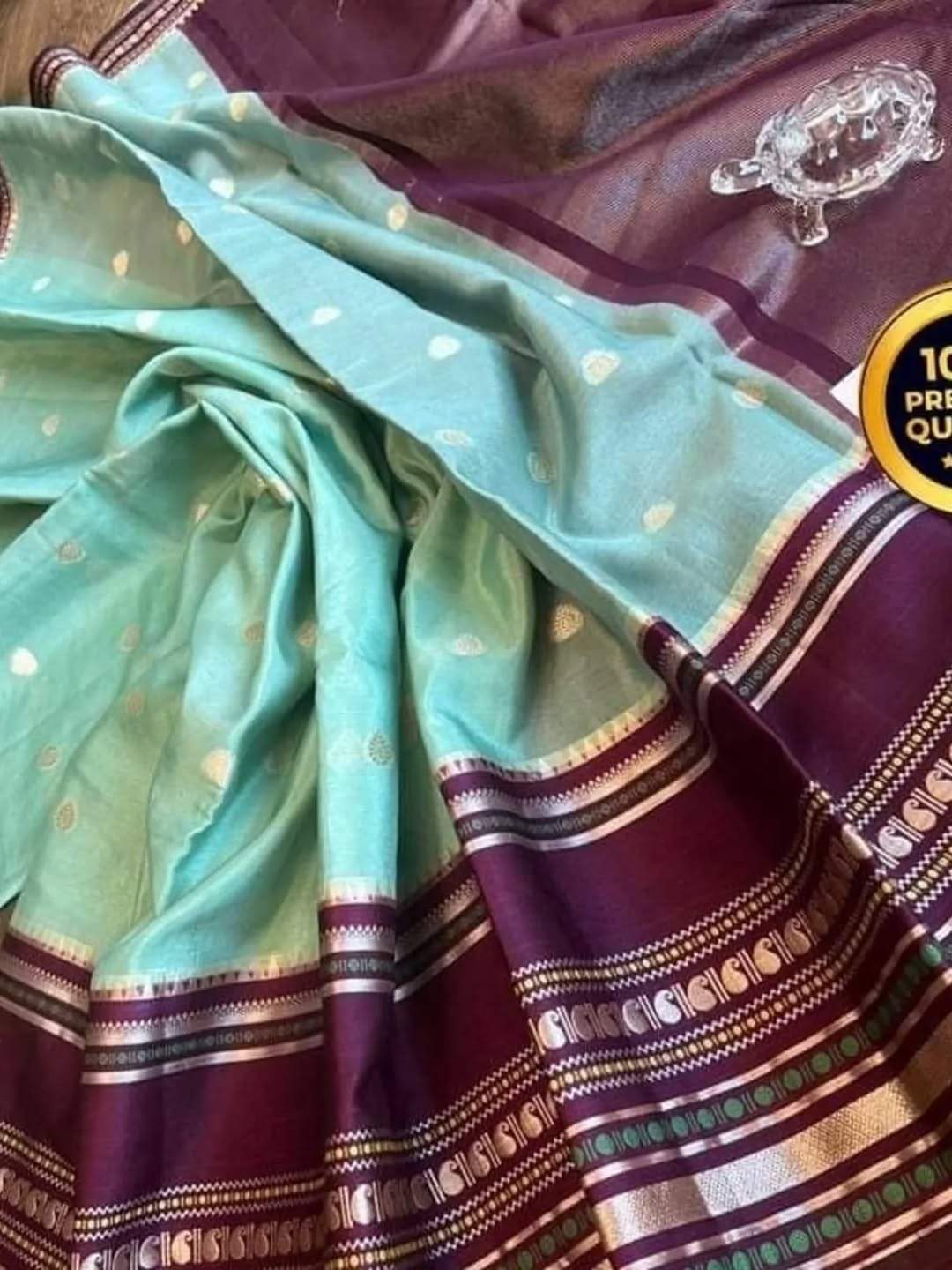 Beautiful zari and mina work in all the border and small buti weaving in all over body