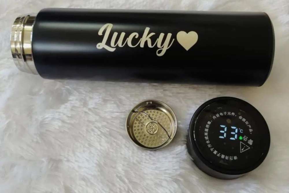 👉🏻* Black temperature water bottle with your Name ( Hot & cold)