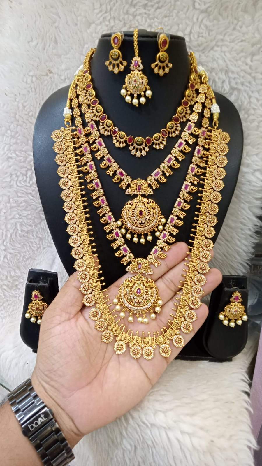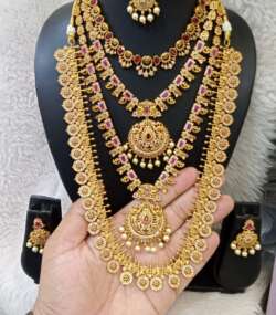 Beautiful combo with 4 necklace and 3 earrings and 1 mangtikka