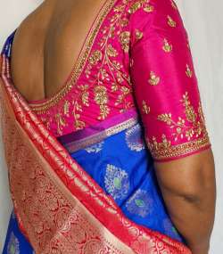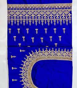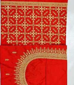 >Gown :- Gold crush fabric with bird embroidery work and Scalloped border>Coat :- Soft Satin dola silk