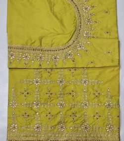 full stiched pure jimmy choo silk febric with all over heavy Swarovski work with inner attached canvas finishLining : heavy crape (full upto bottom)