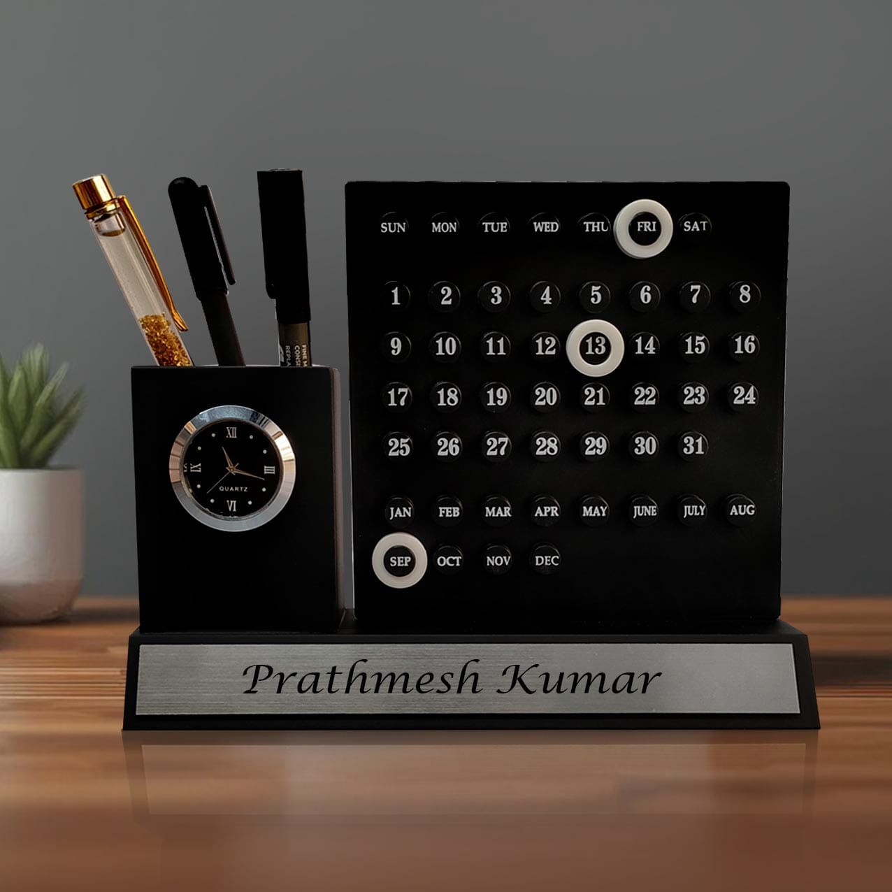 *Personalized desk Organiser with pen stand, calendar and watch*