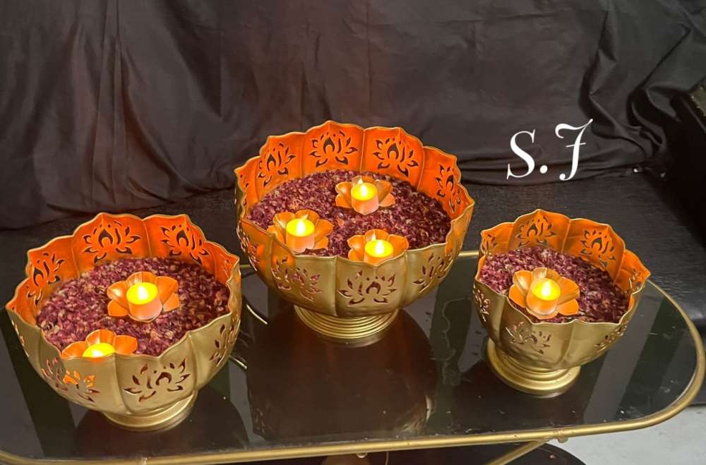 Golden Lotus Urli Set of 3 With Golden Stands 🌺✨