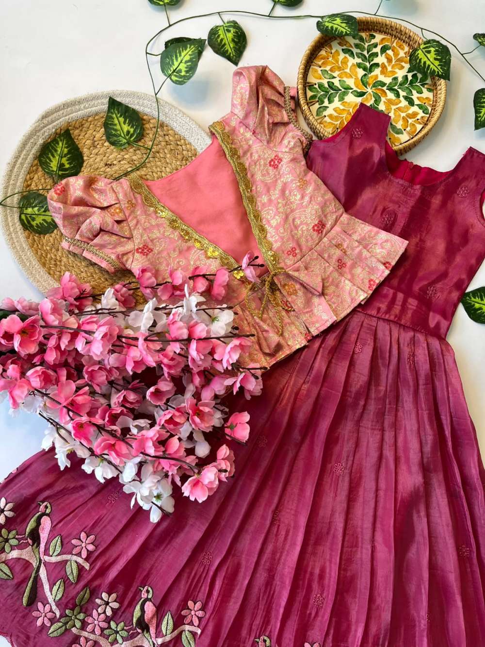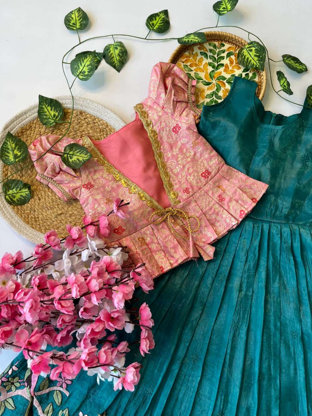 Blouse size -40 (Margin up to 42)Kids Lehengha :- Tissue silk with scalloped flair