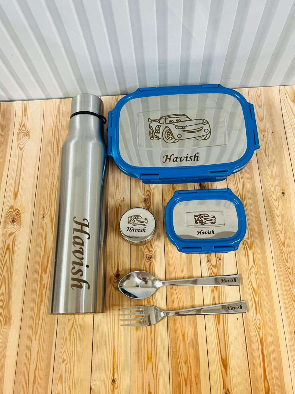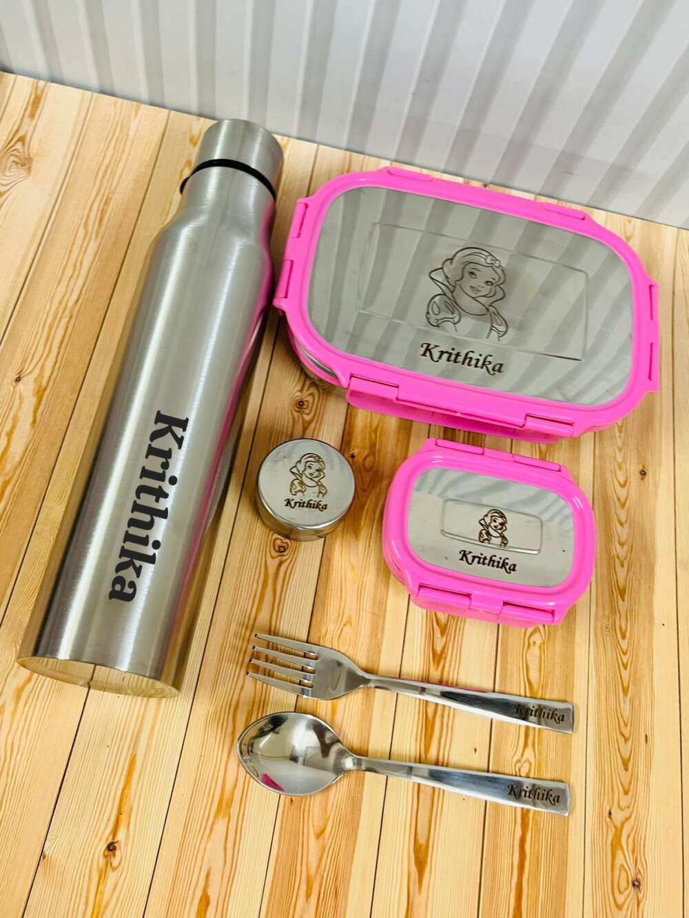 Customised lunch box with Insulated water bottle which keeps water hot n cold for 5-6 hours