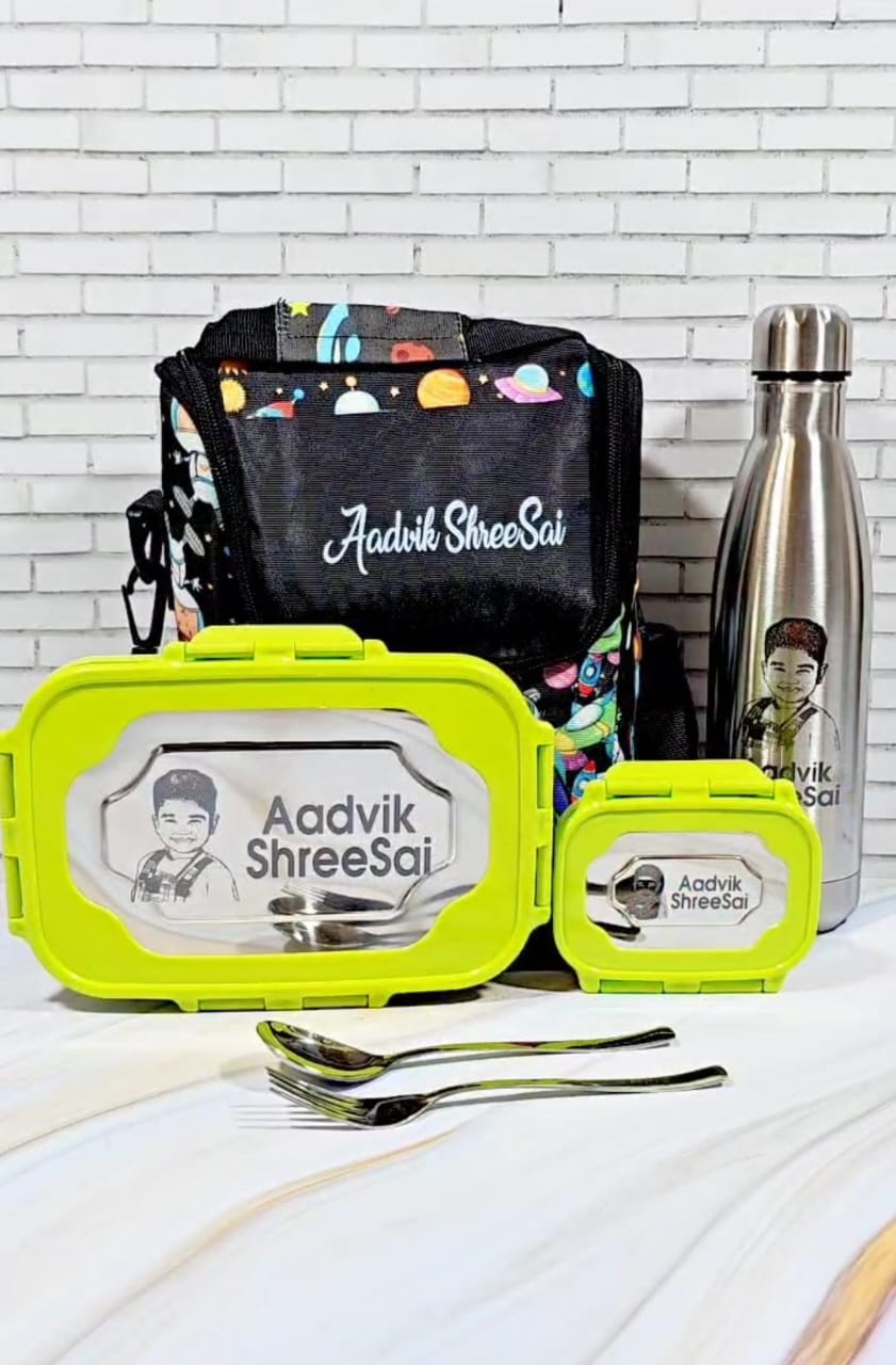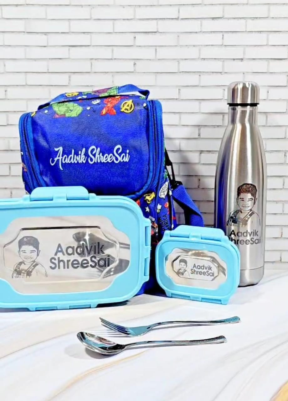Lunchbox + Spoon n Fork + Lunch box Bag + Cola Engraved Bottle 500ml
