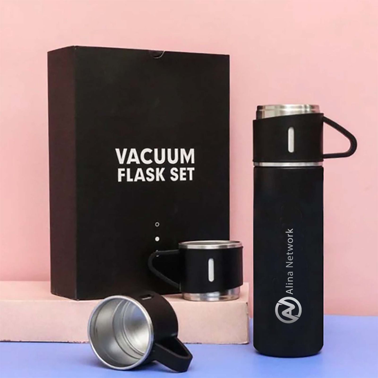 *Personalised Vaccum insulated flask gift set with 3 cups*