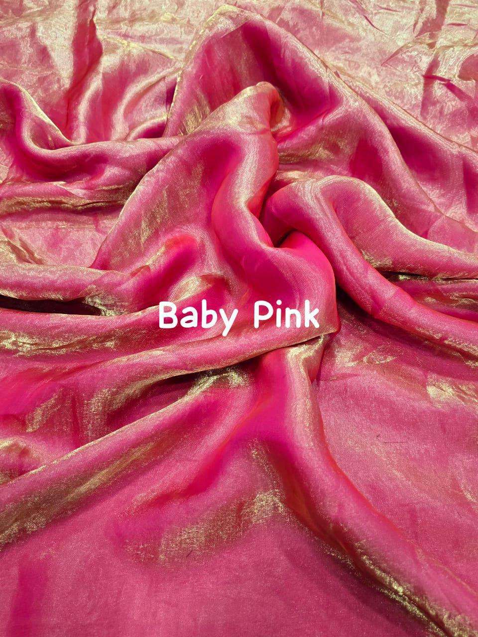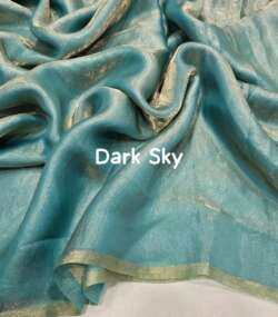 Blouse- full stitched pure chinon febric with all over heavy zari embroidery workdesign pattern same as pc (back side *chain atteched*)