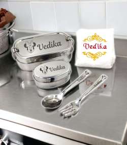 ₹999.00Original price was: ₹999.00.₹899.00Current price is: ₹899.00.Veigo lunch box(cartoon and name ) with spoon and fork